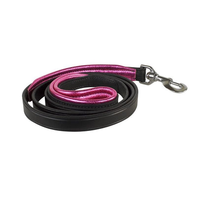 Perris Metallic Padded Leather Dog Leash 5ft Bk/Pi